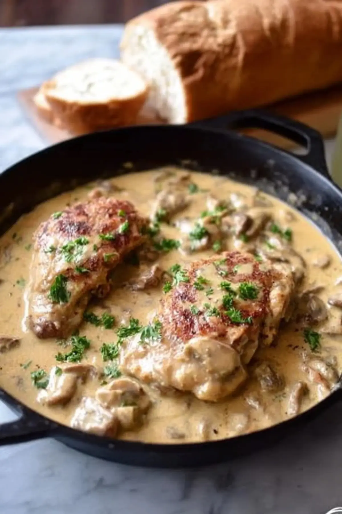 - Garnish with chopped parsley and serve immediately with fresh French bread.